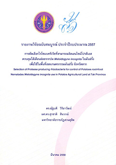 การคัดเลือกไรโซแบคทีเรียที่สามารถผลิตเอนไซม์โปรตีเอสควบคุมไส้เดือนฝอยรากปม Meloidogyne incognita ในมันฝรั่ง เพื่อใช้ในพื้นที่เขตเกษตรกรรมมันฝรั่ง จังหวัดตาก